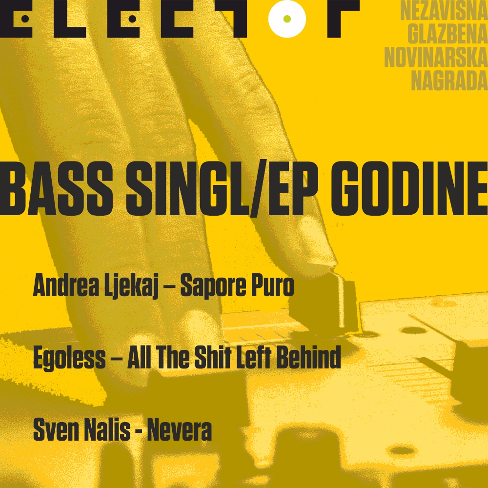 U svijetu elektronike, bass glazba predstavlja srž i dubinu iskustva slušanja. U njoj do izražaja dolaze frekvencije i vibracije koje, ako ih slušamo pravilno, na dobrom soundsystemu, imaju čak i moć promijeniti ritam kucanja našeg srca. A novinarski žiri nagrade ELECTOR dao je do znanja da su im upravo to napravila tri izdanja iz Bass kategorije: Egolessovo “All The Shit Left Behind”, “Nevera” koju potpisuje Sven Nalis te “Sapore Puro” Andree Ljekaja.