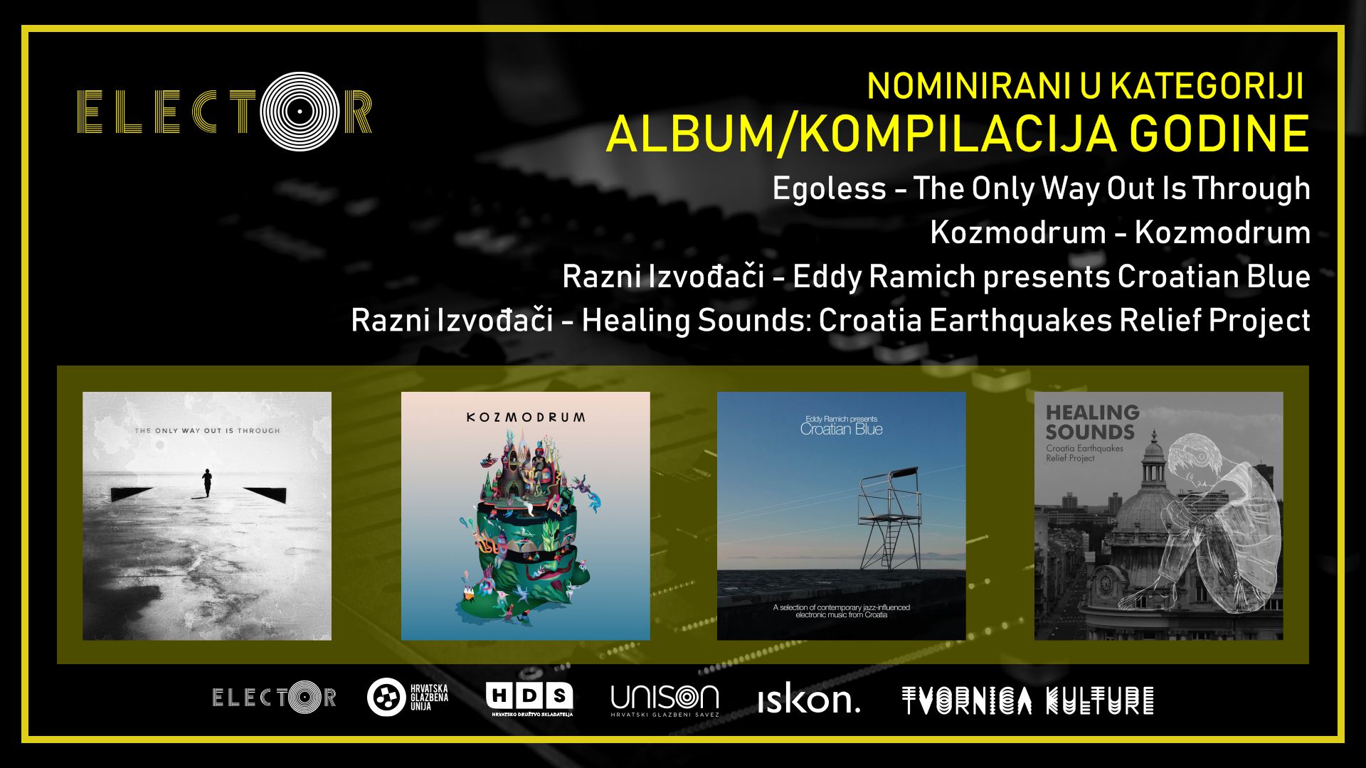 Na prvoj nezavisnoj glazbenoj novinarskoj nagradi za elektroničku glazbu Elector žiri sastavljen od 20 novinara eminentnih domaćih medija koji prate elektroničku glazbenu scenu u dva je kruga izglasao četiri izdanja koja će na prvoj dodjeli Electora u Tvornici kulture 3. veljače odmjeriti snage u kategoriji Albuma / Kompilacije godine.