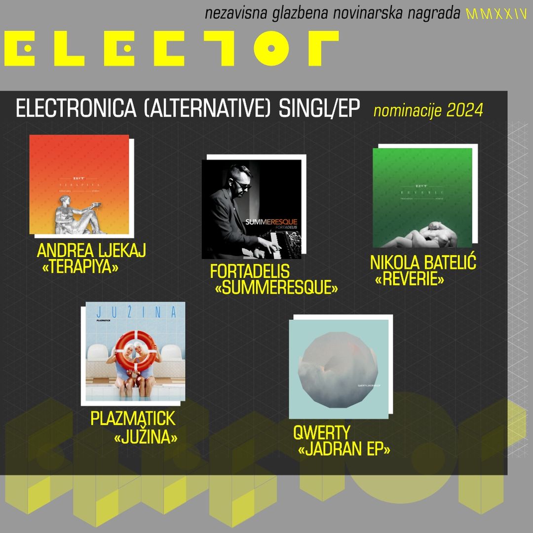 Electronica podrazumijeva pravce i fuzije ambijentalne i eksperimentalne glazbe, leftfield, lo-fi, abstract, raw i sl. Brojna jaka imena domaće elektroničke scene bore se za kipić u ovoj kategoriji nagrade Elector, a tko je zaista uspio i najviše obilježio proteklu godinu, saznat ćemo na dodjeli 1. veljače. Uoči same dodjele, predstavljamo imena nominirana za Electronica (alternative) singl/ EP godine.