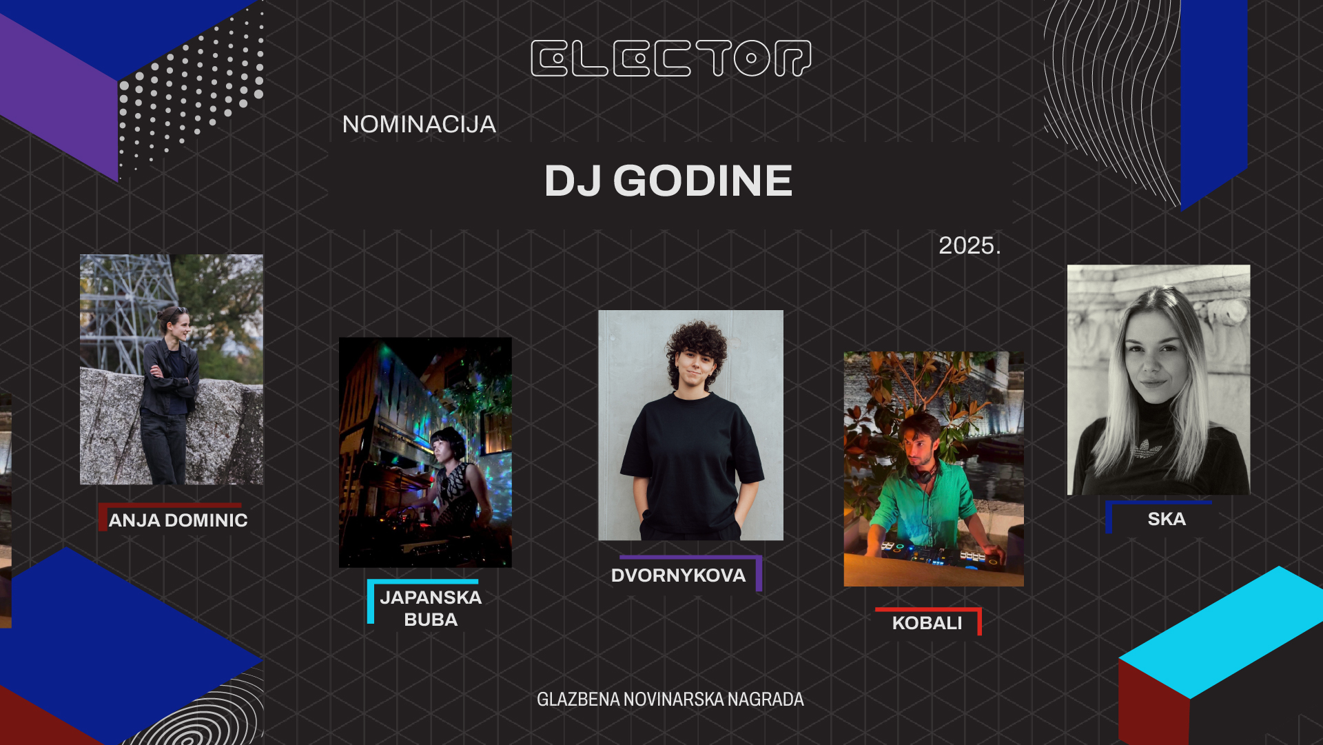 Kategorija New (S)elector godine nagrade Elector već petu godinu odiše svježinom i pomno pazi na nova imena koja će zasigurno u budućim godinama domaćoj elektroničkoj sceni donijeti brojne zanimljivosti. I ovoga puta novinari su odabrali imena koja su po mnogočemu zaslužila nominaciju, a ona su: Anja Dominic, Dvornykova, Japanska buba, Kobali i SKA.